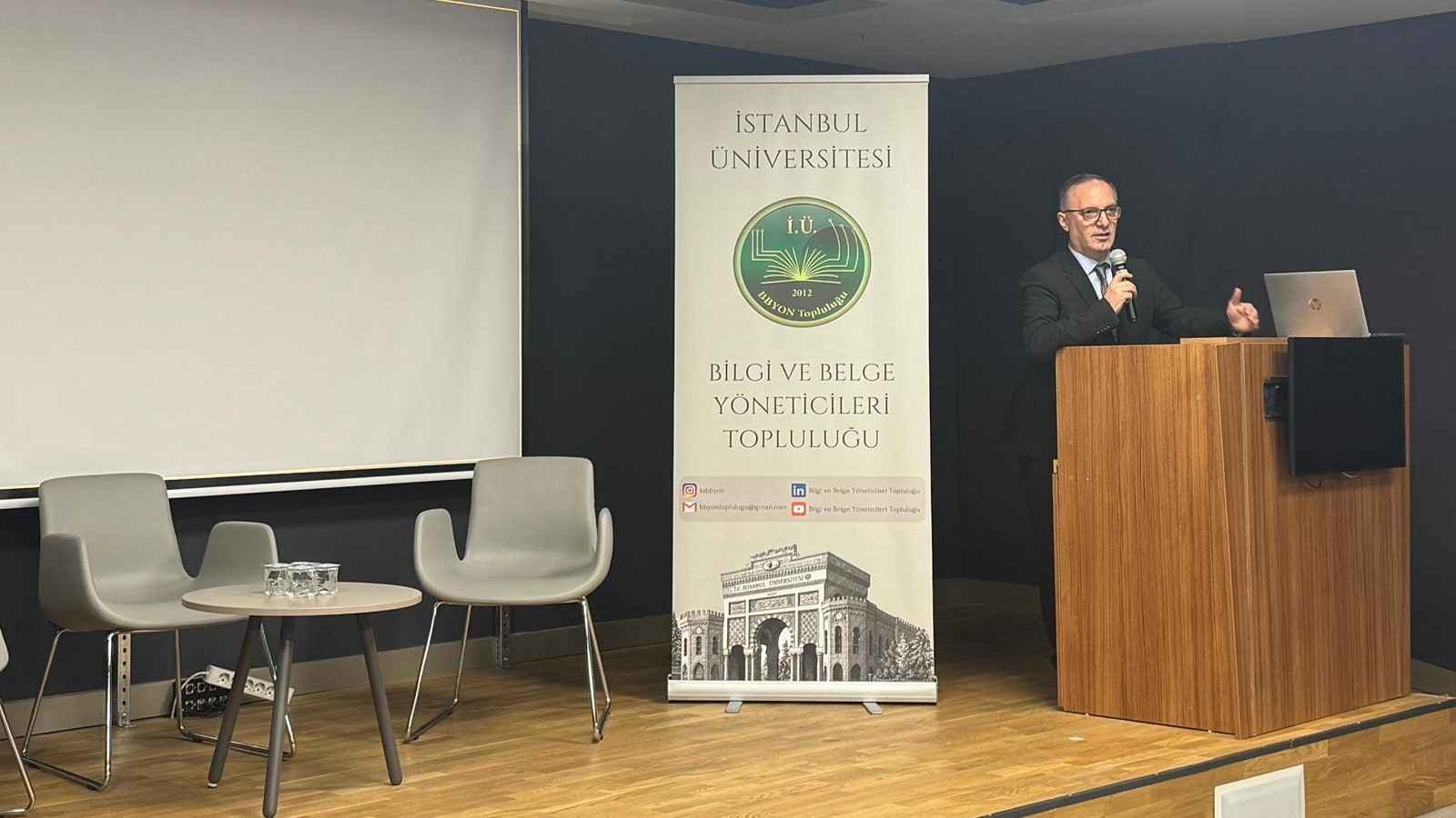 Dr. Sami Çuhadar, Director of the Library and Documentation Department at Istanbul Bilgi University, and Sönmez Çelik, Director of the Library Department at Ibn Haldun University, participated as speakers in the event. The discussion comprehensively evaluated how technological advancements are transforming library practices and the roles that information professionals are assuming in response.