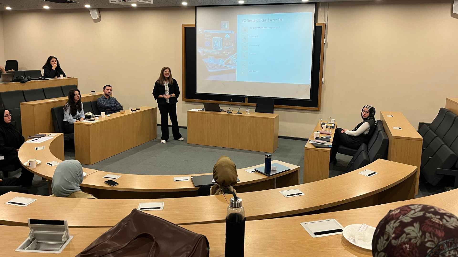 Etkinlikte ayrıca, Kütüphane Daire Başkanlığı’ndan Uzman Yardımcısı Melike Daş tarafından "Akademik Teşvik Uygulamaları" konusu ele alındı. Akademik teşvik süreçlerinin işleyişi, başvuru kriterleri ve araştırmacılara sunduğu katkılar üzerine katılımcıları bilgilendirdi.